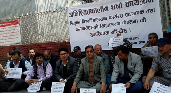 त्रि.वि.का प्राध्यापक र कर्मचारीहरुले अनिश्चितकालीन धर्ना शुरु गरे