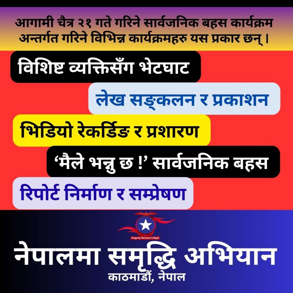 (झ)–शिक्षा क्षेत्रका हरेक तहमा, विषयगत रुपमा सक्षम, क्षमतावान, व्यवहारिक तथा नैतिकवान शिक्षकको छनोट गर्न सक्नुपर्दछ । (ण)–विज्ञान,प्रविधि,कृषी प्राविधिक ज्ञान र सीपमा आधारित ज्ञानी शिक्षक हरुलाई प्रोत्साहित गर्ने खालका कार्यक्रमहरु ल्याउनु पर्दछ । (ट)–विश्वविद्यालयबाट उत्पादित ज्ञानी तथा विज्ञ हरुलाई विषयगत रुपमा, उचित संरक्षण गरिकन जिम्मेवार वनाउनु पर्दछ र पलायन हुनबाट जोगाउनु पर्दछ । (ठ) – उद्योग र कलकारखाना–मात्र नभएर कृषि क्षेत्रका प्राविधिक र विज्ञहरु धेरै भन्दा धेरै उत्पादन गरेर, माटो र हावापानी सुहाउँदो जमिनमा खेती गर्न र गराउन, पढेलेखेका नागरिक हरुलाई वैज्ञानिक ढङ्गले राज्यद्वारा प्रोत्साहित गर्नुपर्दछ र पाठ्यक्रम नै यही हिसावले वनाउनु पर्दछ आदि । यदि नेपाल सरकारले यति गर्नसके देश समृद्धिको यात्रामा अगाडी वढ्न कसैले पनि रोक्न सक्दैन । नेपालमा समृध्दि अभियान ।