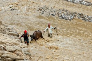सङ्खुवासभाको हेवांखोलामा यही असार २ गते आएको बाढीले साँघु र पुल बगाएपछि खोलाबाटै जोखिम मोलेर पशुलाई सुरक्षित स्थलतर्फ लगिँदै । तस्बिर : सुजन बज्राचार्य/रासस Read more »