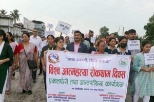 विश्व आत्महत्या रोकथाम दिवसका अवसरमा आइतबार भरतपुर महानगरपालिकाको सहकार्य र स्वास्थ्य कार्यालय चितवनको आयोजनामा गरेको प्रभातफेरी कार्यक्रममा बागमती प्रदेशका स्वास्थ्यमन्त्री उत्तम जोशीलगायत सहभागी । तस्बिरः सनद अधिकारी/रासस Read more »
