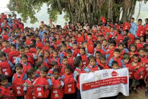 हेलम्बु एजुकेशन एण्ड लाइभलीहुड पार्टनरसीप नेपालले पाँचपोखरी थाङ्पाल गाउँपालिका–६ स्थित गोल्मेश्वरी आधारभूत विद्यालयका २६० विद्यार्थीलाई शैक्षिक सामग्री वितरणपछि व्यागका साथमा बालबालिका । तस्बिरः देवराज सुवेदी/रासस Read more »