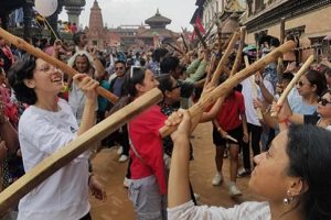 भक्तपुरमा दरबारस्क्वायमा बिहीबार गाइजात्रा मनाउने क्रममा तहमचा बोकेर साँस्कृतिक नाच घिन्ताङघिसी नच प्रर्दशन गर्दै स्थानीय। तस्बिर : रमेश गिरी/रासस Read more »
