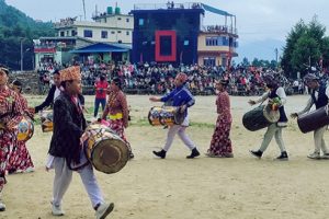 ताप्लेजुङमा बिहीबार देखि सुरु भएको ताप्लेजुङ गोल्डकप प्रतियोगिताको उद्घाटन कार्यक्रममा च्याब्रुङ नृत्य प्रस्तुत गर्दै स्थानीय कलाकार । भदौ २० गते सम्म सञ्चालन हुने प्रतियोगितामा आठ टिम सहभागी छ्न । तस्बिर : सन्तोष... Read more »