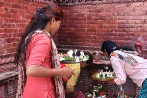गुँपुन्हि पर्व अवसरमा भ्यागुतालाई पूजा गर्नुअघि भक्तपुरको निकोसेरास्थित पूजा गणेश मन्दिरमा पूजाआजा गर्दै स्थानीय । यस पर्वमा भातसहितका परिकार खुवाएर मूलाको चानाको ऐना बनाएर भ्यागुतोलाई देखाउने गरिन्छ । तस्बिर :नारायण न्यौपाने/रासस Read more »