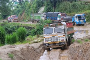 उत्तर–दक्षिण कोशी राजमार्गअन्तर्गत सङ्खुवासभाको खाँदबारी नगरपालिका–३ स्थित मिलनचोकमा हिलोमा ट्रक फसेपछि सडकमै अलपत्र परेका मालवाहक ट्रक । पाँच दिनअघि फसेको ट्रक निकाल्न नसक्दा सदरमुकाम खाँदबारीदेखि नुम जाने र नुमबाट खाँदबारी आउने १००... Read more »